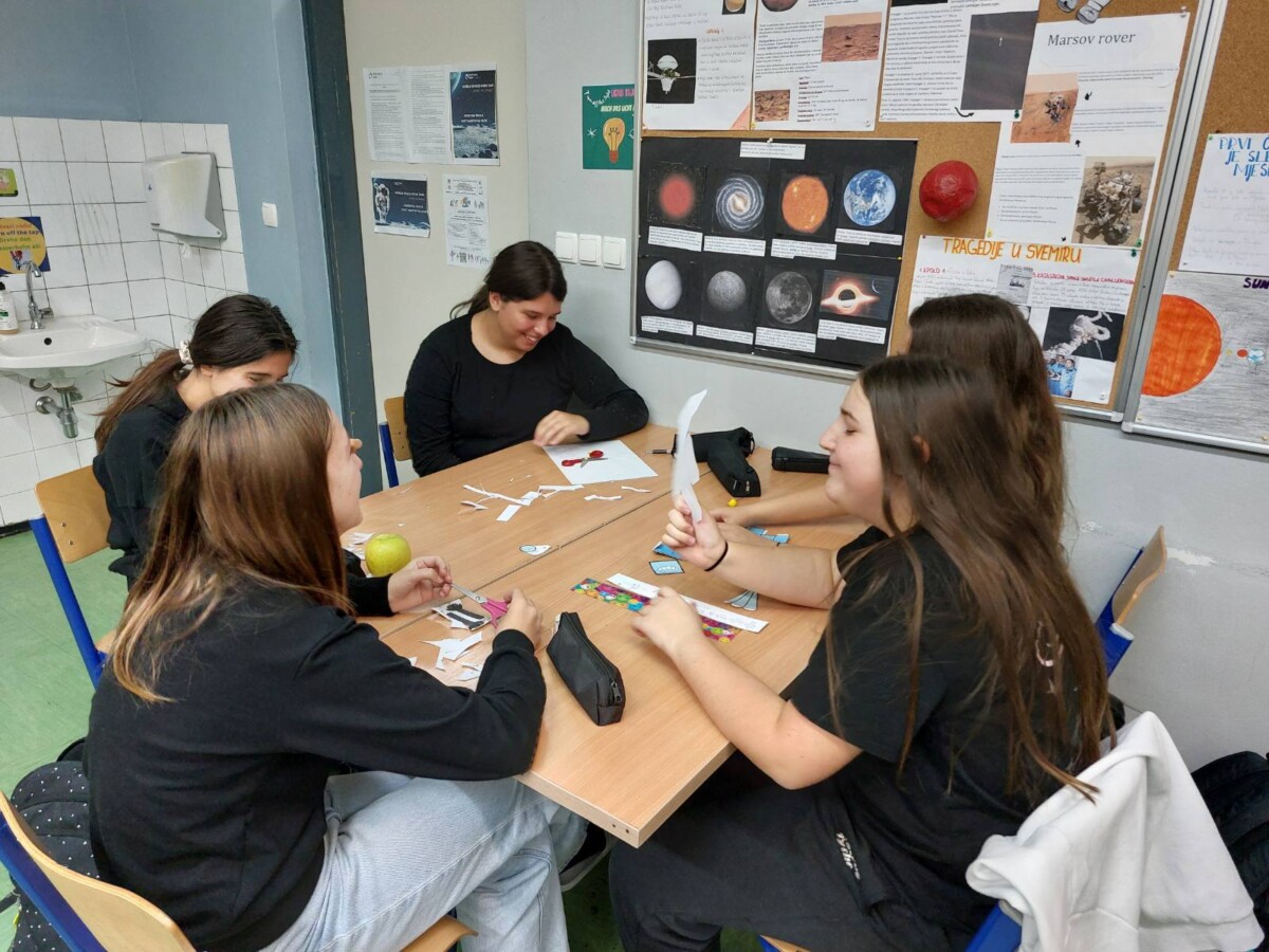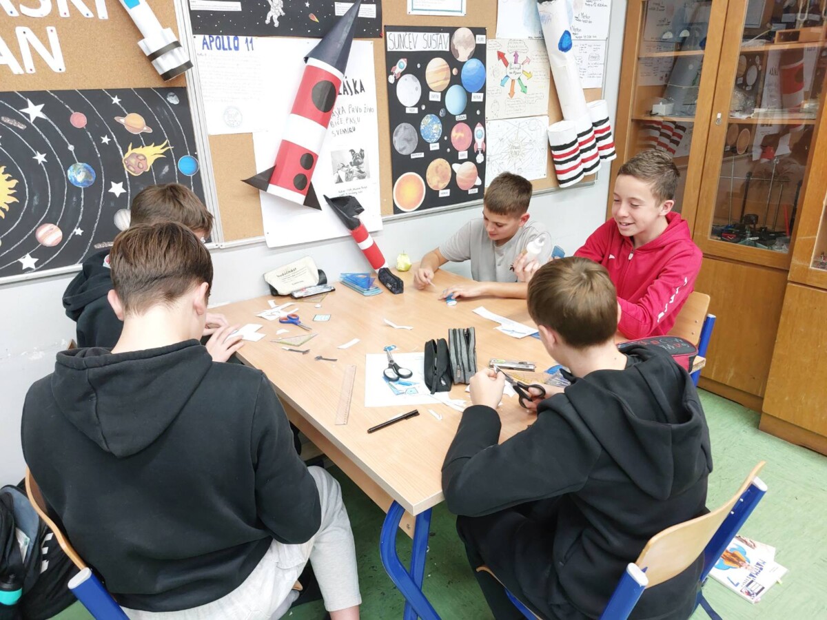 Učenici od 5. do 8. razreda na satovima fizike i matematike rješavali su križaljke, kvizove, istraživali pojmove iz astronomije, izrađivali modele planeta, rakete i meteorite, te stvarali svemirske crteže, galaksije i astronaute.