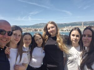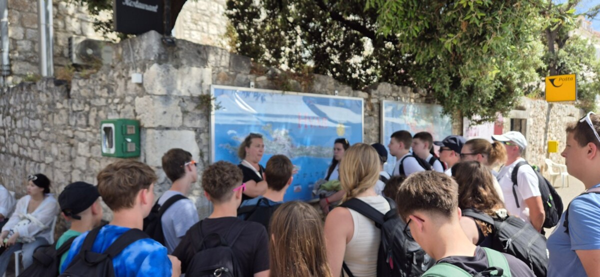 Sljedeća stanica bio je Split, gdje su razgledali znamenitosti grada pod Marjanom, uključujući povijesnu jezgru i Dioklecijanovu palaču. Za mnoge učenike poseban doživljaj bila je prva vožnja trajektom, koja ih je dovela do Jelse na Hvaru – njihove baze tijekom boravka na otoku.