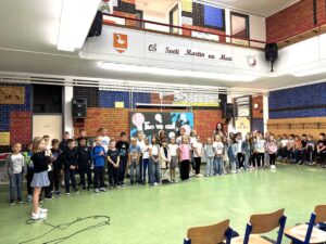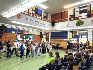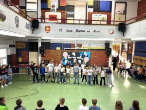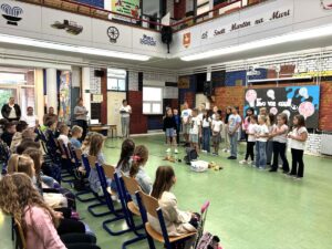 Popodnevna smjena započinje zajedničkim okupljanjem učenika od 5. do 8. razreda u školskom holu, a posebno pozdravljamo naše nove petkaše i njihove razrednike.