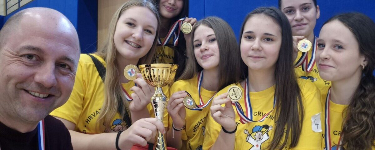 Ove godine našu pobjedničku ekipu čine Zoa Vinko, Hana Perčić, Ema Perčić, Nera Žignić, Gabriela Goričanec i Chriztel Renae Aceveda, uz stručno vođenje mentora Dražena Crnčeca. Zajedno su pokazali iznimnu predanost, timski rad i humanost, što su vrijednosti koje Crveni križ njeguje i promiče. Zahvaljujemo na pomoći i volonterki Crvenog križa Alenki Novak koja je pomogla u pripremama.