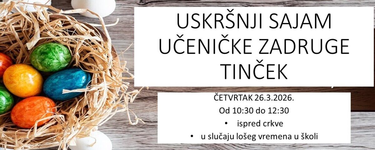Sutra, četvrtak 26.3. održava se Uskršnji sajam Učeničke zadruge Tinček.
